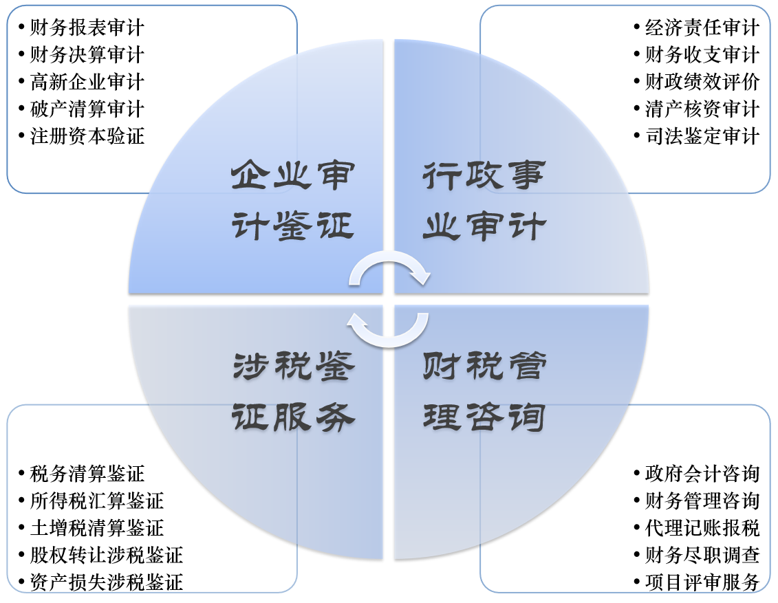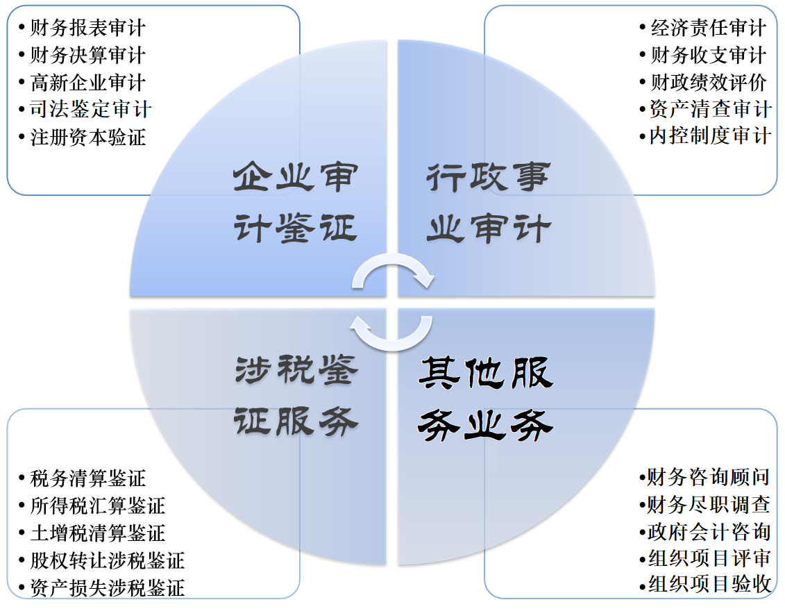 事务所在30年的发展过程中,逐渐形成了“四大”专业服务板块: