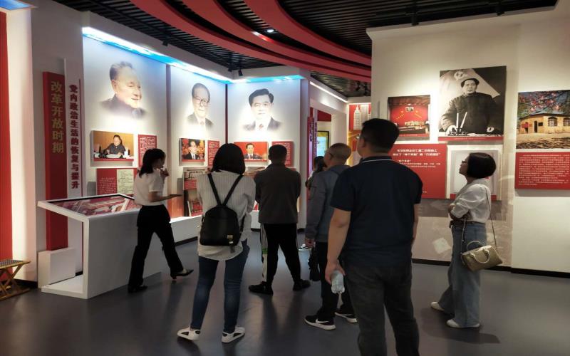 在讲解员的带领下,大家一同参观了文化展厅,仔细观看各类珍贵文献、照片、视频等资料,了解了中国共产党的发展历程。