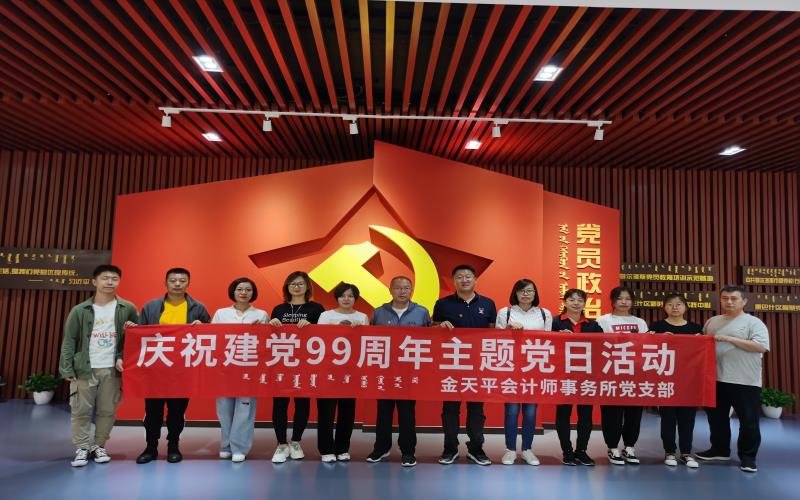 为庆祝中国共产党成立99周年,2020年7月4日,鄂尔多斯金天平联合会计师事务所部分党员及在所职工赴康巴什党员政治生活馆开展了“庆祝建党99周年”主题党日活动。