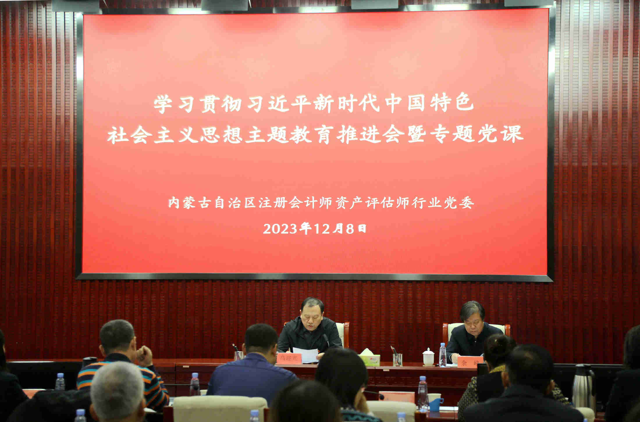12月8日上午,内蒙古自治区注册会计师资产评估师行业党委召开学习贯彻习近平新时代中国特色社会主义思想主题教育推进会自治区财政厅二级巡视员、注册会计师资产评估师行业党委书记高迎光同志做主题教育推进讲话并讲授专题党课。会议由自治区“两师”行业党委副书记、协会常务副会长兼秘书长余峰同志主持。